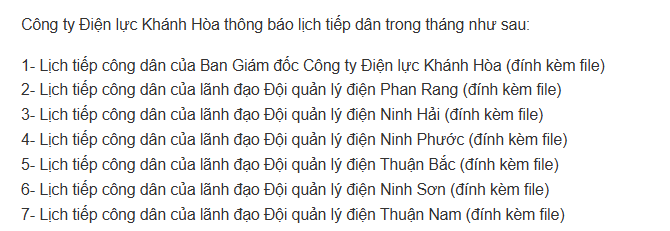 1- Lịch tiếp công dân của Ban Giám đốc Công ty Điện lực Khánh Hòa (đính kèm file)