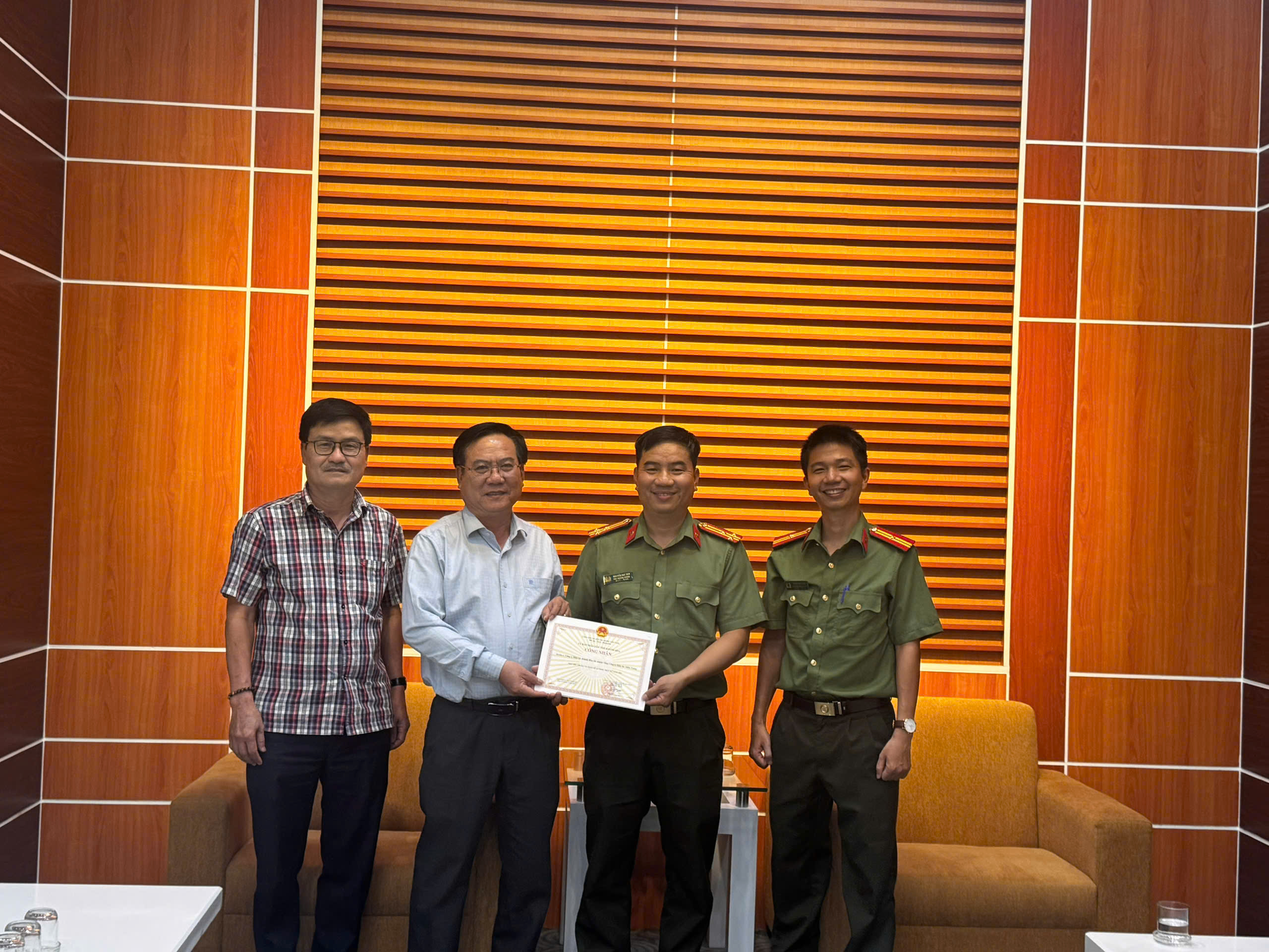 Lãnh đạo Phòng An ninh-kinh tế Công an tỉnh Khánh Hòa trao Quyết định của UBND tỉnh Khánh Hòa cho KHoPC