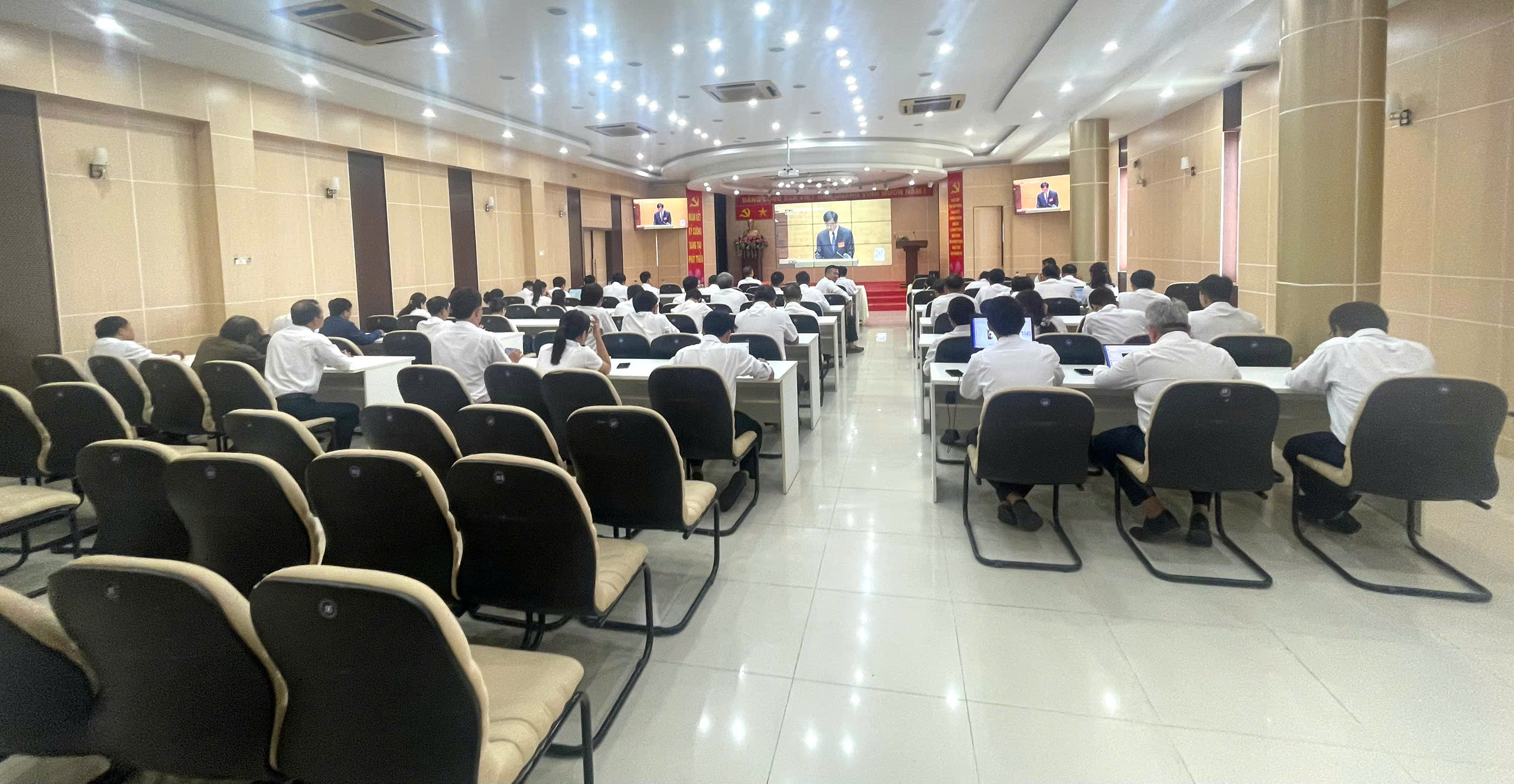 Toàn thể cán bộ, đảng viên tham dự Hội nghị đã nghe quán triệt 05 chuyên đề trọng tâm về các nội dung cốt lõi, điểm mới của Nghị quyết, Quy định, Kết luận của Hội nghị Trung ương hai khóa XIV, bao gồm: